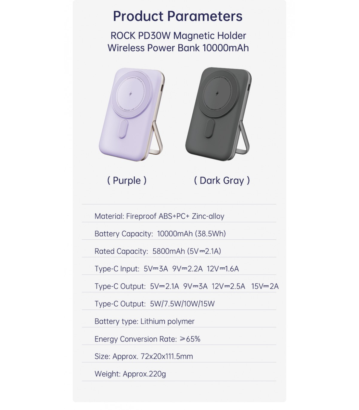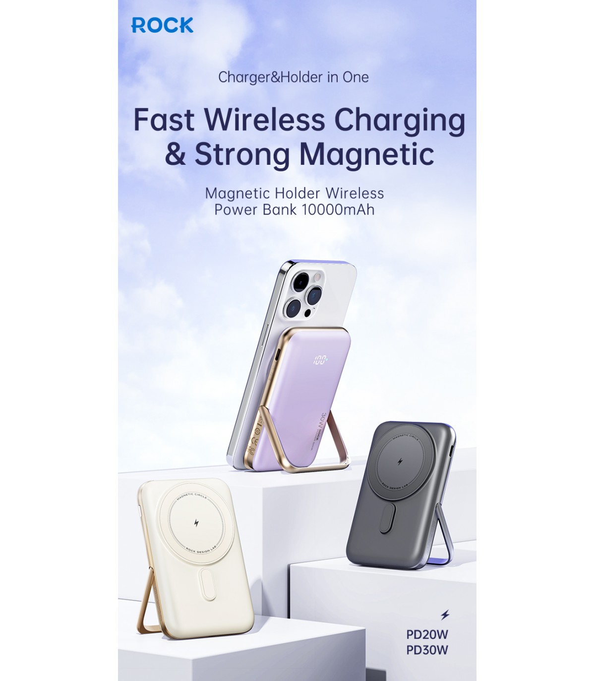 ROCK P30 Portable 10000Mah Powerbank With Magnetic & Stand