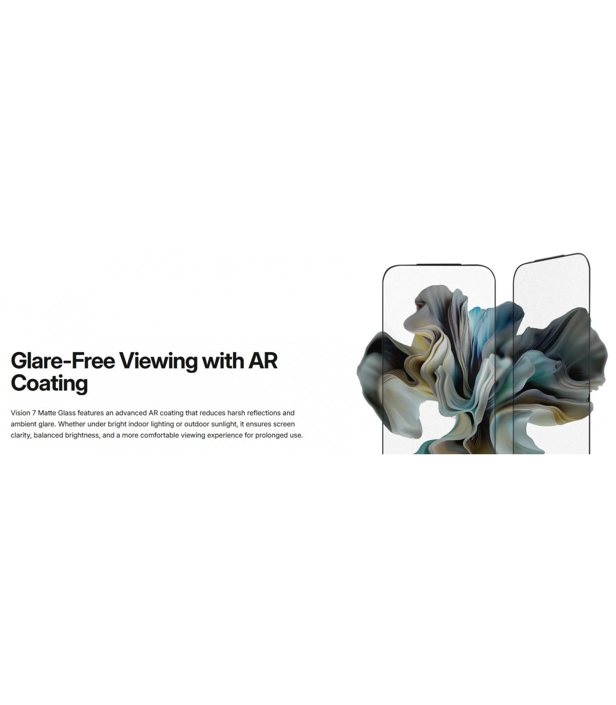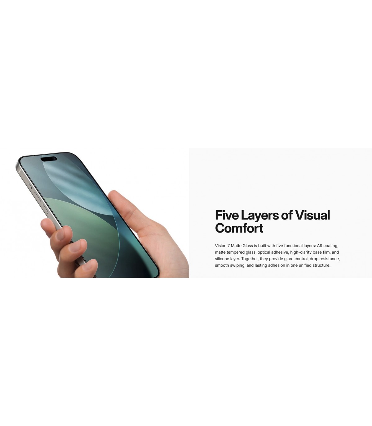 Titan Vision 7 Matte Glass reduces screen glare with an advanced AR coating while offering dust protection, durability, and smooth touch. Featuring a five-layer structure, Filter 7 mesh, and drop-tested strength, it maintains clarity and comfort for everyday use in bright environments.