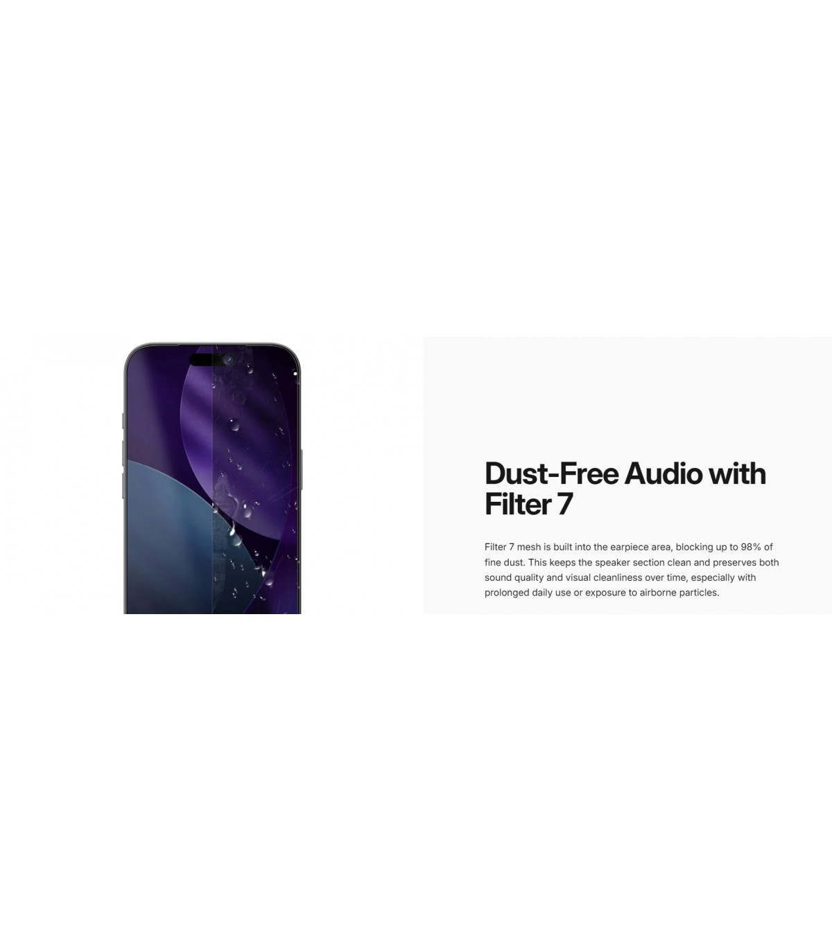- Filter 7 Dust Protection : blocks up to 98% of fine dust from entering the earpiece, maintaining audio quality and a clean front appearance.